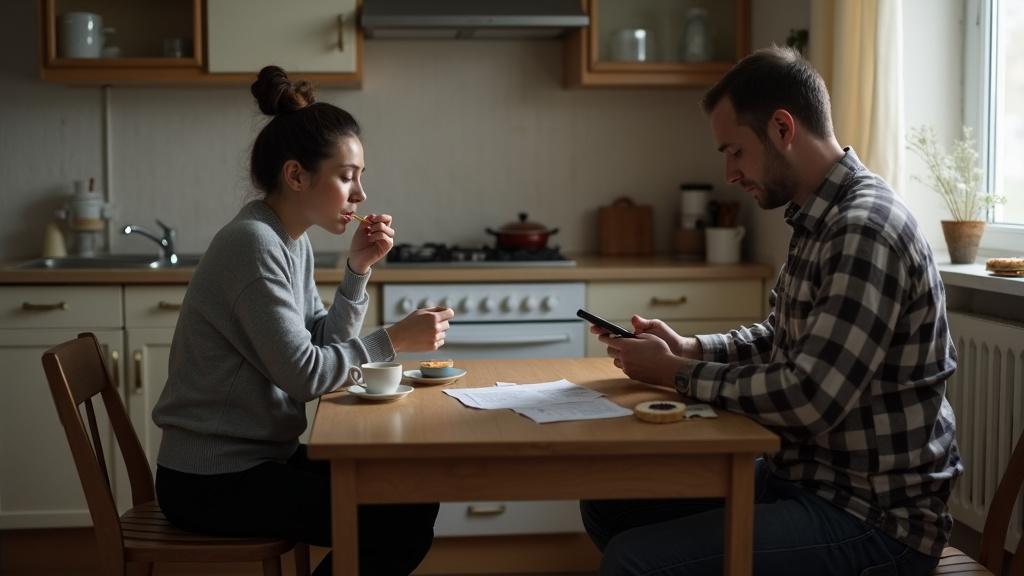 Игорь, её супруг, спокойно жевал бутерброд, просматривая новости на телефоне. Казалось, что всё происходит так, как должно, будто это не представляло ничего необычного.