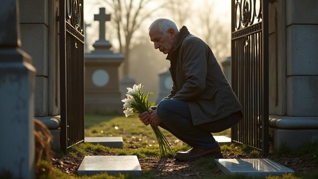 Алексей опускался на колени, аккуратно протирал мрамор тряпкой, которую всегда носил с собой, бережно расставлял лилии, а затем садился на каменную скамью рядом с их могилами. «Привет, мои девочки», — тихо шептал он. «Папа рядом».