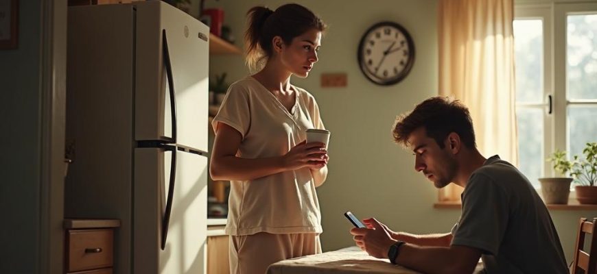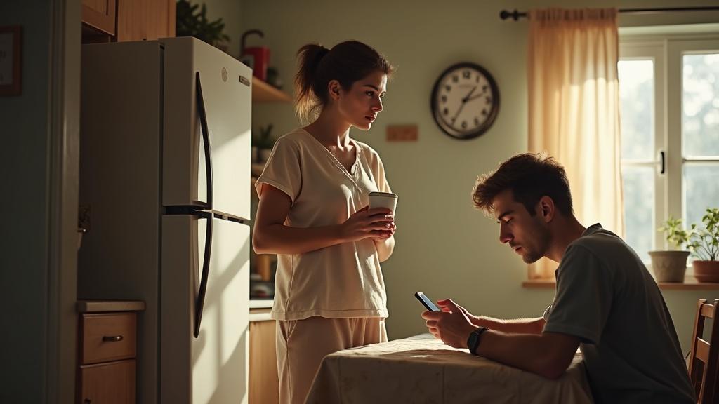 Муж Алексей сидел за столом, уткнувшись в телефон.