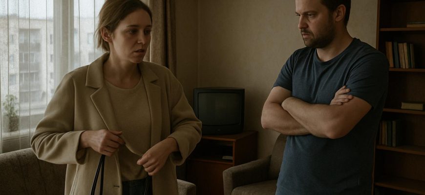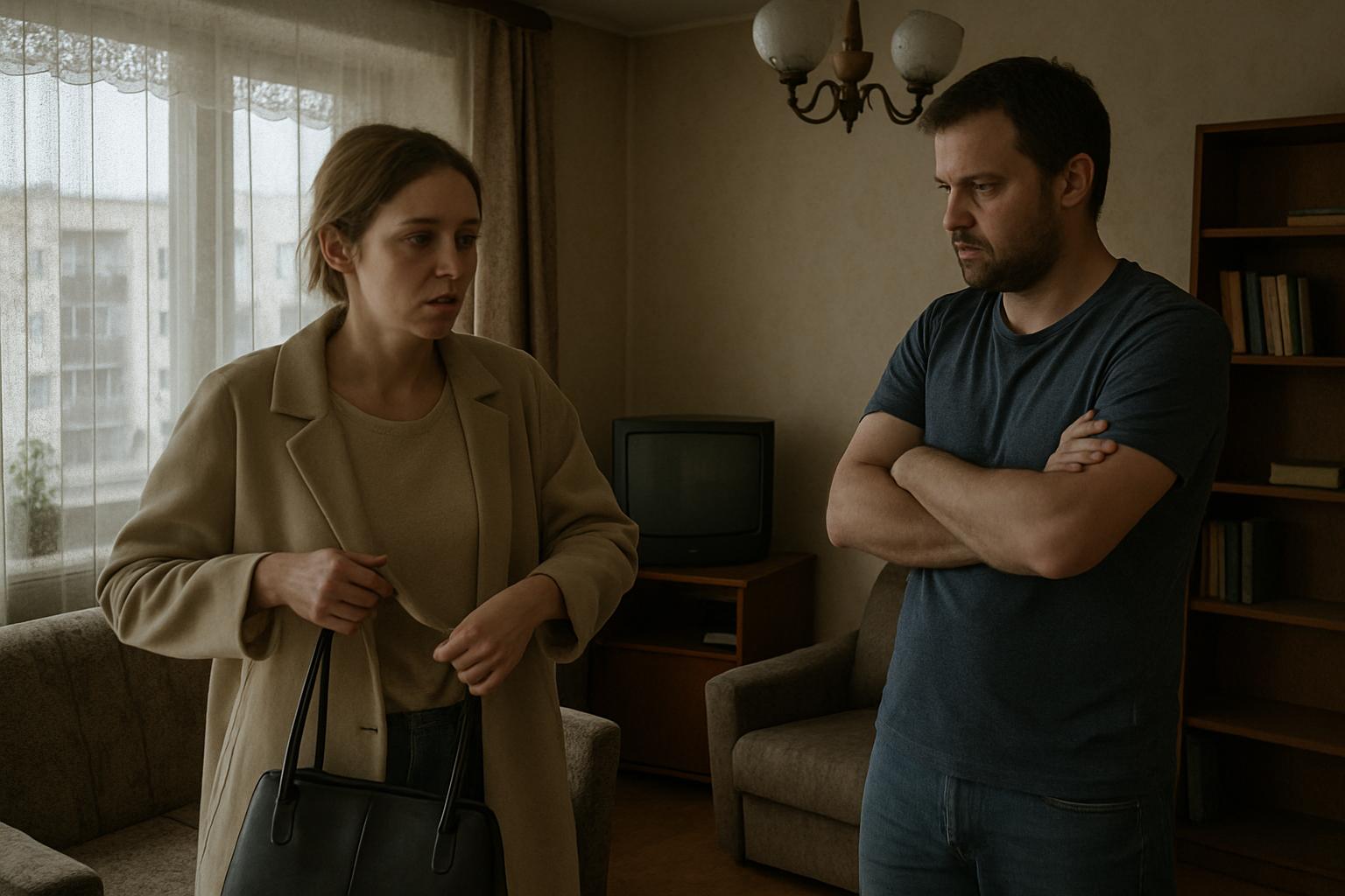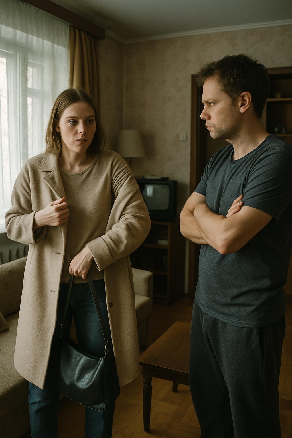 В гостиной посреди комнаты стоял Алексей, скрестив руки, с напряжённым выражением лица. — Нам нужно поговорить, — сказал он.
