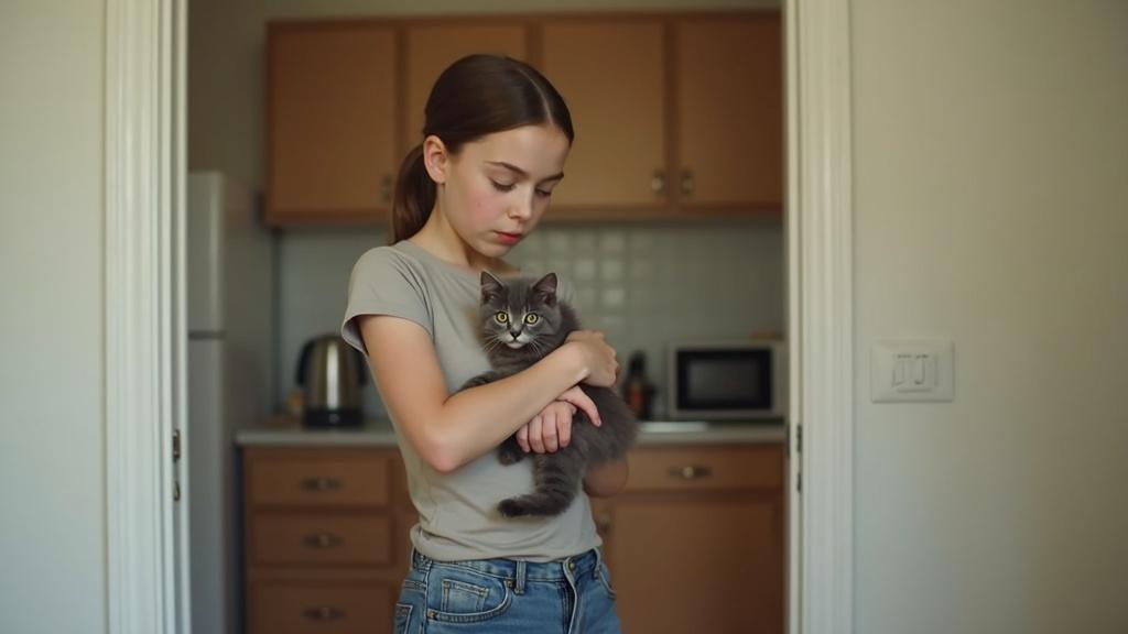 Увидев дочь с мокрым от дождя котёнком, Ольга вздохнула и указала на дверь ванной: — Пока положи его туда, сейчас помоем, высушим и посадим на карантин.