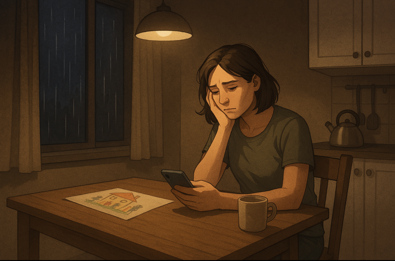 Она остаётся на кухне, в тишине, которая не пугает. В тишине, где можно быть собой. Где начинается новая глава.