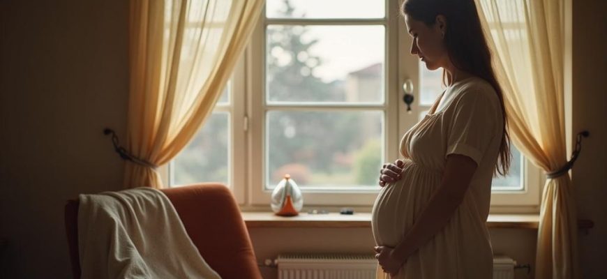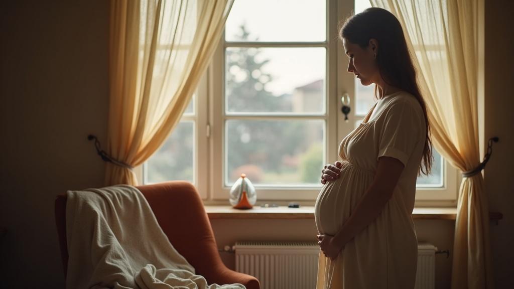 У окна стояла беременная женщина и аккуратно гладила бельё.