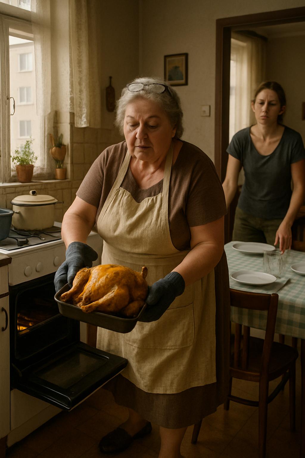 Тамара Сергеевна стояла у плиты и с нежностью снимала с противня золотистую, шипящую курицу.