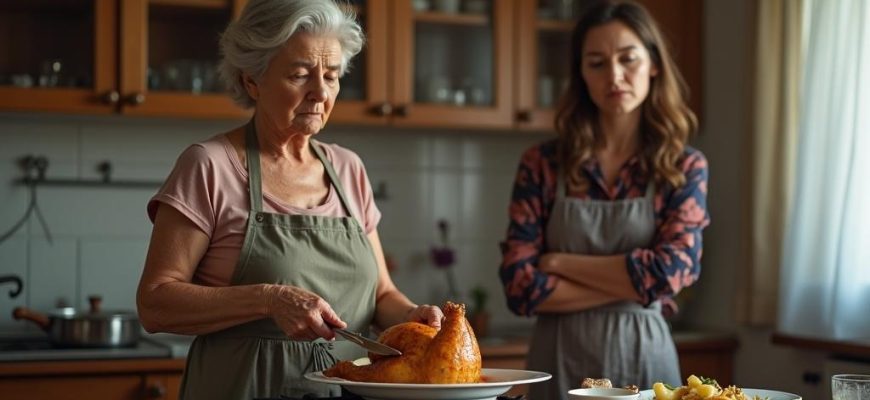 Когда суп был съеден и настало время курицы, Тамара Сергеевна взяла нож и вилку. — Ну, Алёшенька, как предпочитаешь? — спросила она с лукавой улыбкой. — Да как всегда, мам, — равнодушно ответил мужчина, уткнувшись в телефон.
