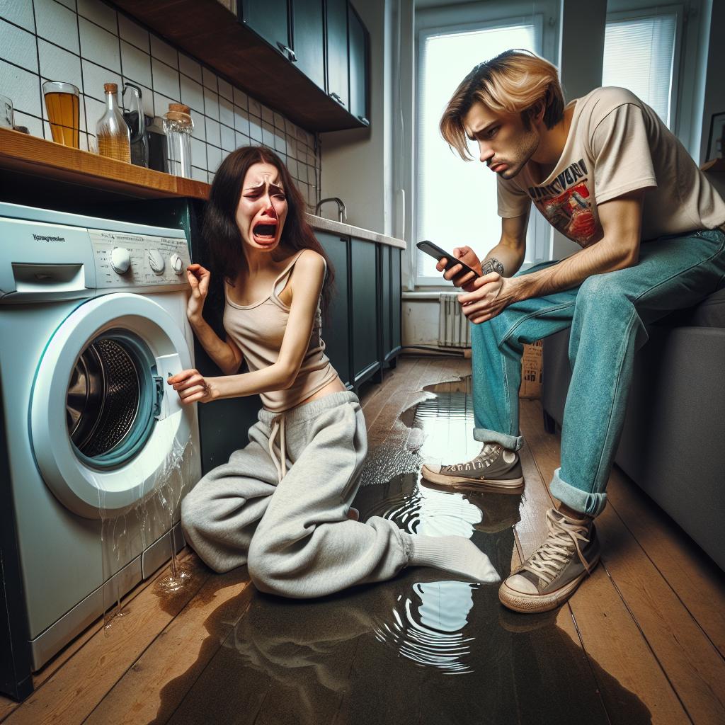 Понял! — А как так? — ошарашенно смотрел Игорь. — Должно было… — Чем больше ты строишь из себя умного, тем больше проблем создаёшь всем! — сдерживая гнев, сказала Ольга. — Убирай воду, пока не потекла к соседям! — Ну, это… — растерянно развёл руки Игорь. — Тряпки в углу! — указала Ольга. — Воду спустишь, откроешь машинку, переложишь бельё в ванну и начинай стирать!