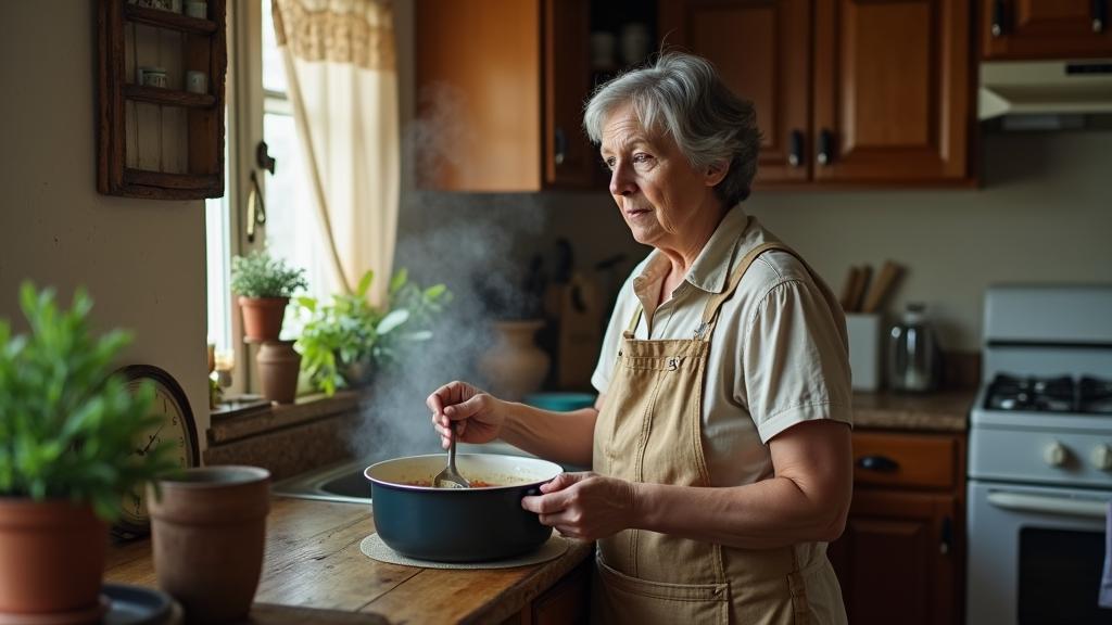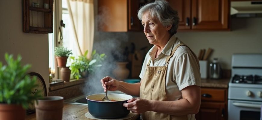 Суп булькал на плите, старая кастрюля немного подтекала с одного бока. «Надо бы новую купить», — подумала она, но тут же отмахнулась от этой мысли.