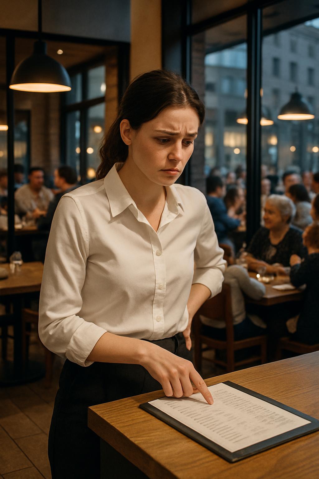 Я подошла к ним, чтобы уточнить заказ, и специально повторила вслух, чётко перечисляя блюда и количество порций.