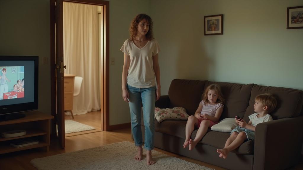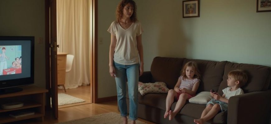 На диване в комнате, завалив подушки, сидели ее дети — Илья и Маша — и смотрели мультфильм.
