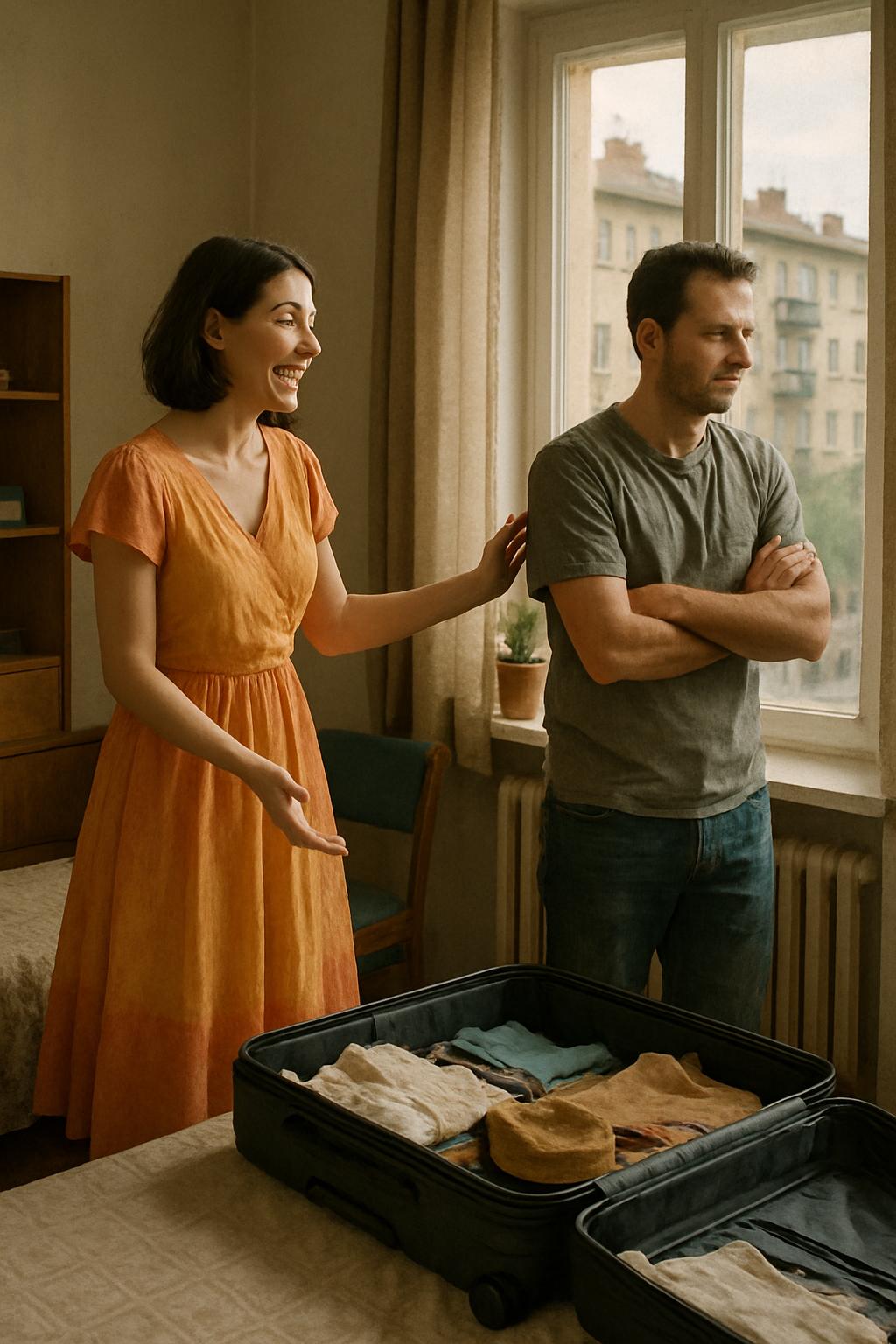 Ольга осталась одна в гостиной, среди полусобранных чемоданов и новых, ещё пахнущих магазином вещей.