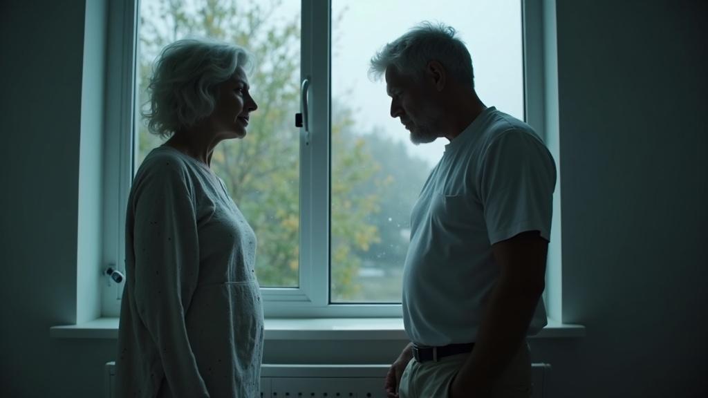 Алексей стоял у окна больничной палаты, наблюдая за серым дождём октября.