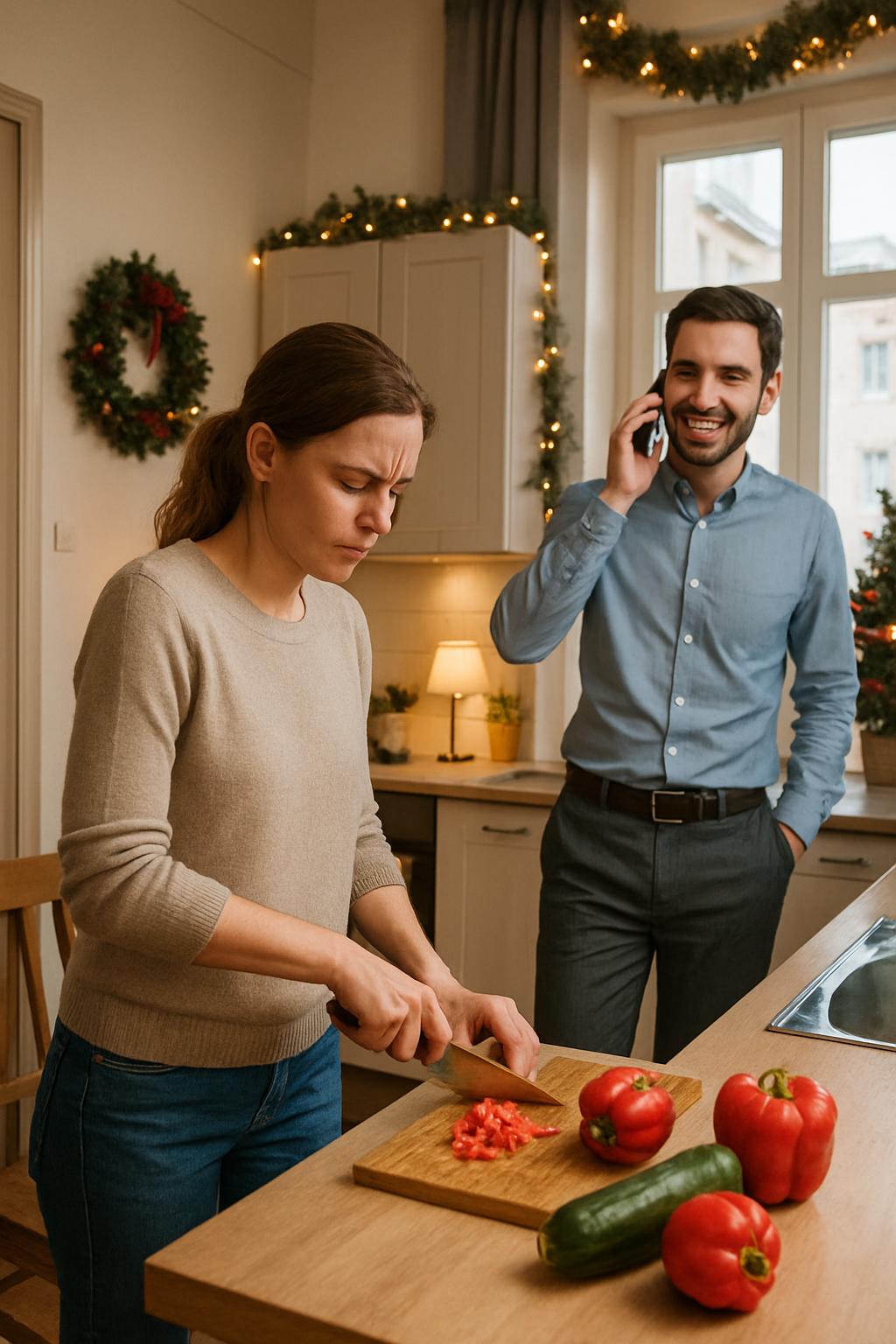 Она прошла в комнату, осмотрела квартиру: — Лёша, Новый год на носу, а у вас тут пыль на полках.