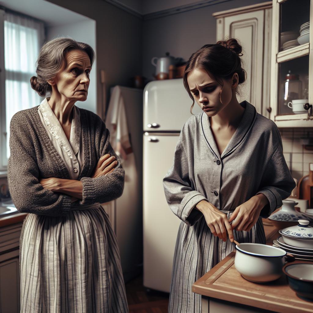 — Слушай, Тамарка, — стоя на кухне и подперев бок рукой, сказала свекровь Нина Сергеевна, — а почему вы с моим Алексеем всё откладываете? Пять лет в браке, а дом пустой, словно погреб без картошки. Мне уже за пятьдесят, хочется внука подержать на руках, пока здоровье позволяет.