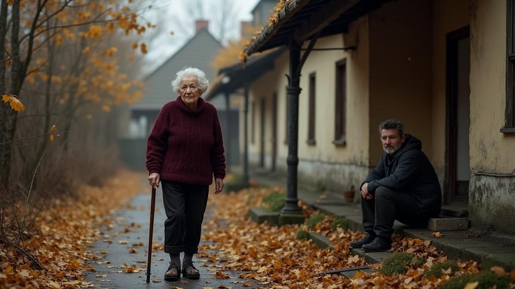Девяностошестилетняя Тамара Сергеевна, хрупкая, словно осенний листок, но с глазами, в которых всё ещё горел огонь прежней силы, шла по узкой тропинке, опираясь на изогнутую трость из тёмного дерева.
