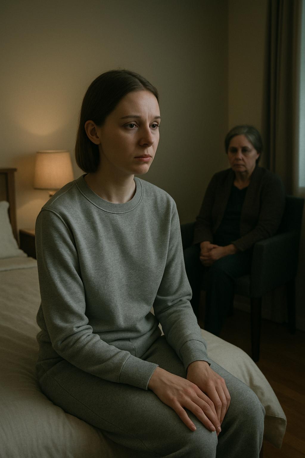 Она сидела на краю кровати, словно застывшая статуя, и смотрела на стену напротив.