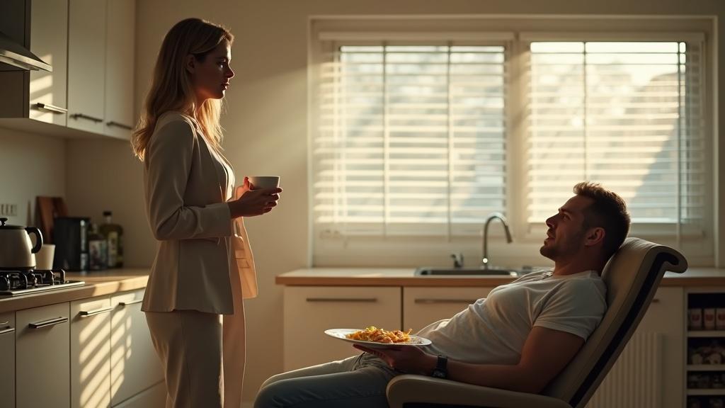 Утренние лучи солнца, пробиваясь сквозь дорогие жалюзи, беспощадно освещали лицо её мужа — помятое и слегка отёчное после вчерашнего пива у телевизора.