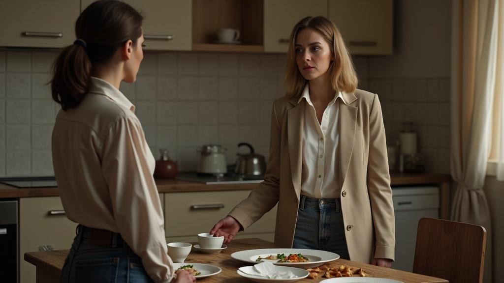Руки её слегка дрожали от сдерживаемого гнева. — Может, заварите с мамой чай? — предложил Алексей, стараясь разрядить обстановку. — Я сама справлюсь, — холодно ответила Ольга.