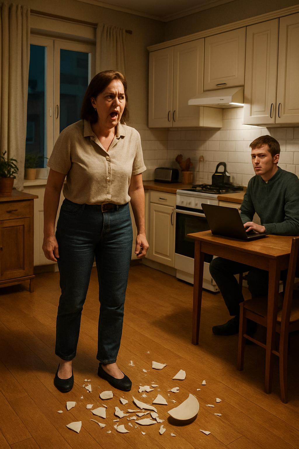 Ольга стояла в центре кухни, глядя на разбросанные по полу осколки фарфоровой посуды.