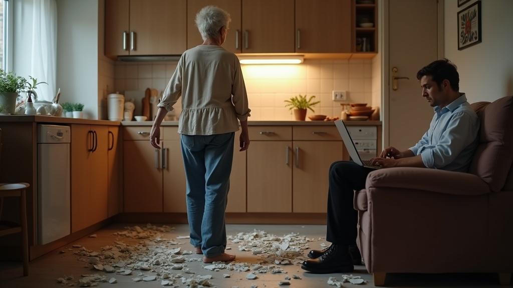 Ольга стояла в центре кухни, глядя на разбросанные по полу осколки фарфоровой посуды.