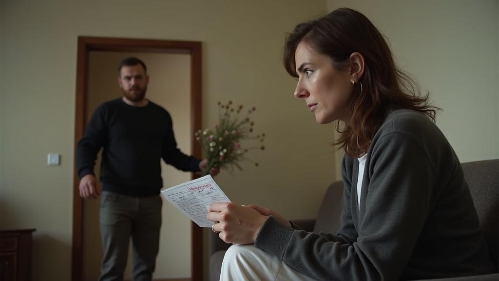 Алексей остановился в дверях, держа в руках небольшой букет полевых цветов. Его улыбка постепенно угасла, когда он увидел выражение лица жены.