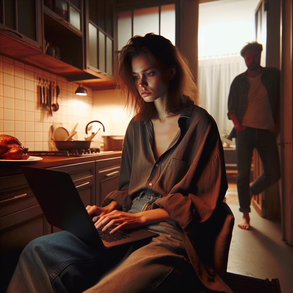 Она сидела на кухне, подперев голову рукой, и смотрела на тёмный экран своего старенького резервного нетбука.