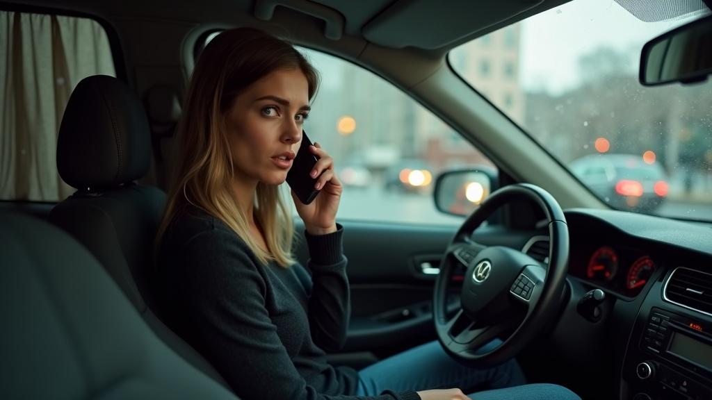 Ольга резко затормозила, находясь в гуще оживленного автомобильного потока.