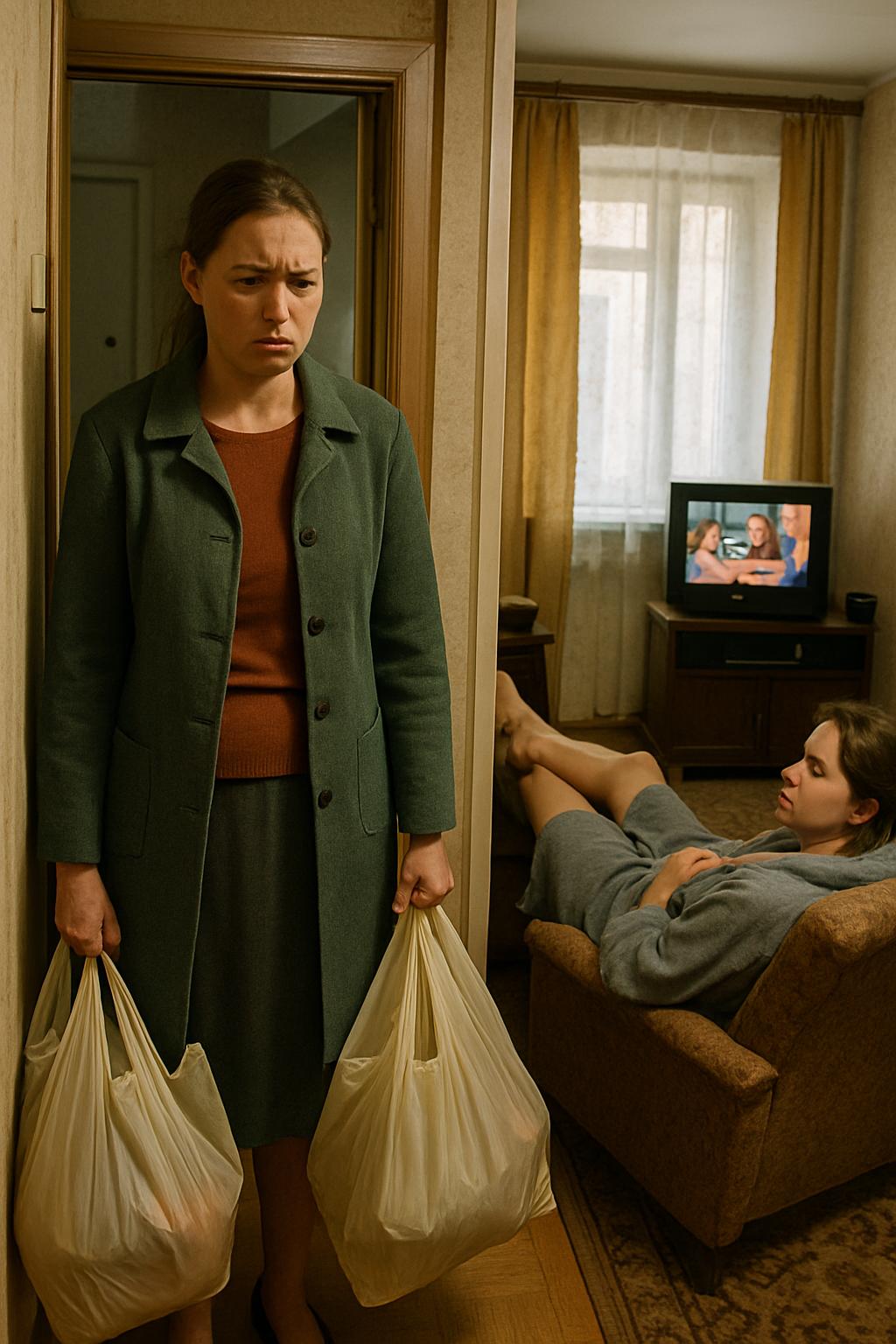 Ольга застыла в дверях своей квартиры, тяжёлые сумки тянули руки вниз.