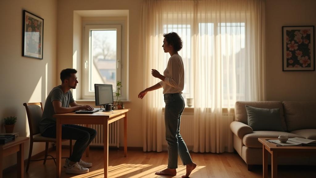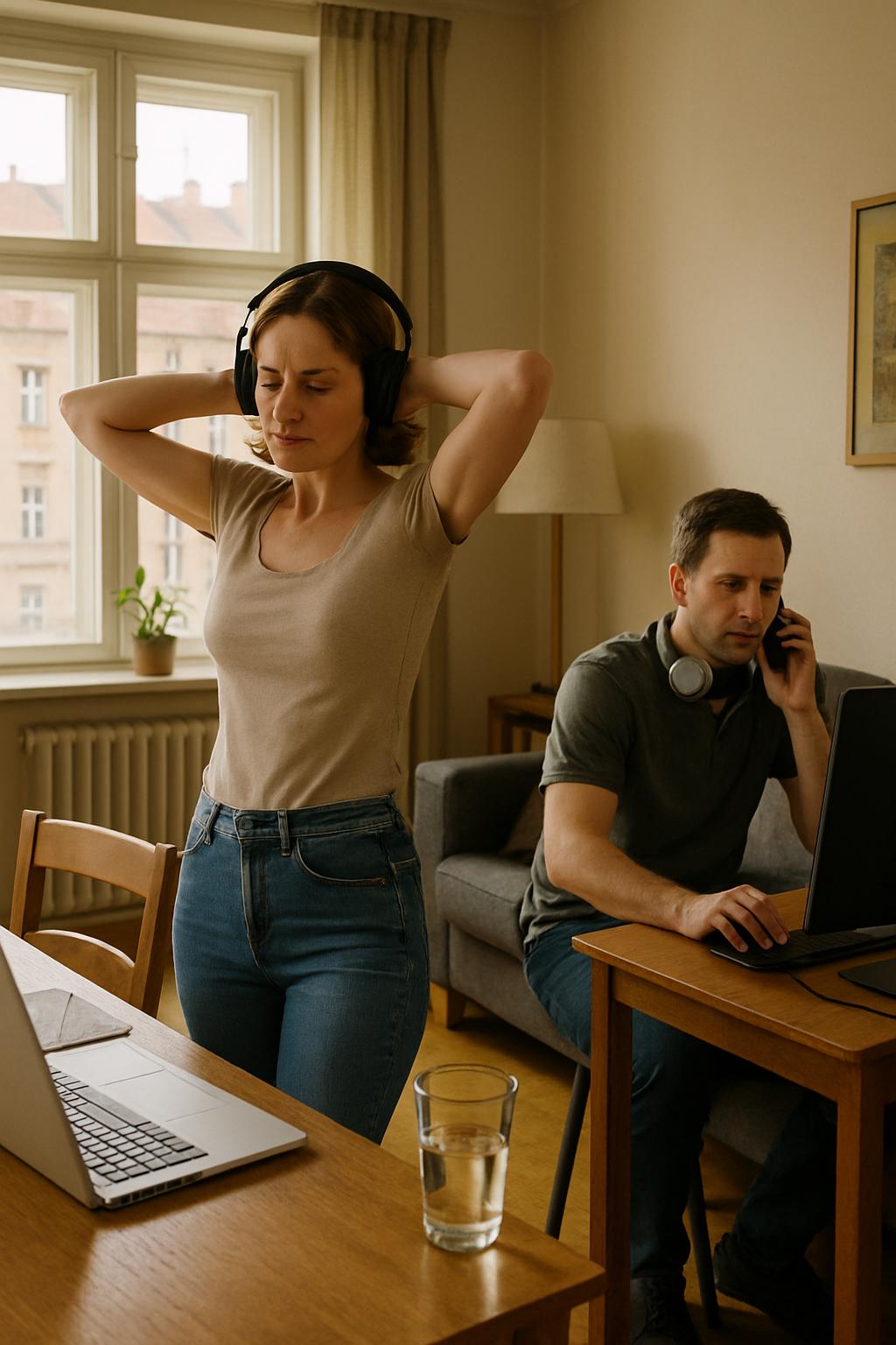 В двухкомнатной квартире, где оба работают удалённо и требуется тишина. — Серёжа, ты понимаешь, что это невозможно? — Почему это невозможно? — Он встал. — У нас же две комнаты. — Одна из них мой кабинет.