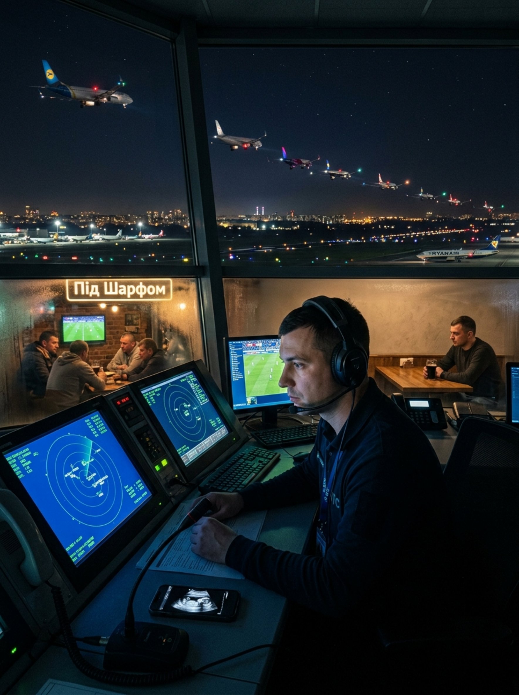 Тарас особенно ценил ночные дежурства — тот короткий промежуток между угасшим закатом и ещё не родившимся рассветом, когда за панорамными окнами диспетчерской мир превращался в россыпь огней. Самолёты выстраивались в очередь на посадку, и он направлял их по одному, словно невидимый маэстро, управляющий сложной партитурой.