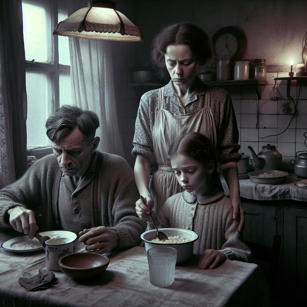 — Папа, почему тётя Оксана обращалась к тебе «милый»? — Тамара случайно уронила ложку.,Пожалуйста, предоставьте текст, который нужно переписать.,— М-м… — слабо сказала Тамара, уронив ложку на стол, а Алексей, её супруг, чуть не захлебнулся от киселя. На мгновение на кухне воцарилась гробовая тишина, словно пространство накрыло стеклянным колпаком: суета домашнего ужина превратилась в острую, как хруст первой наледи под ногами, атмосферу. Их дочь Настя, смешная двенадцатилетняя девочка с косичками-косами, полная бесстыдной откровенности и детской наивности, глядела на родителей широко раскрытыми глазами. Впервые Тамара заметила во взгляде дочери что-то взрослое, оценивающее. Старинная лампа, расположенная над столом, слегка подрагивала, образуя на скатерти причудливый узор теней.