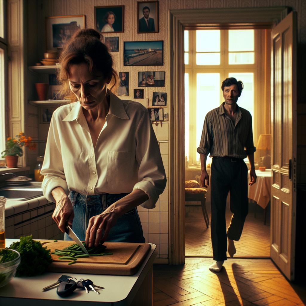 Я находилась на кухне, нарезая овощи для салата, когда внезапно дверь распахнулась, и в комнату вошёл Алексей. По выражению его лица сразу стало ясно — произошло что-то важное. Он избегал моих глаз и нервно перебирал ключи в руках.