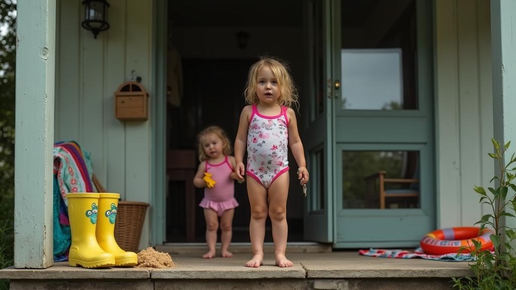 На крыльце моей дачи оказались детские резиновые сапожки ярко-жёлтого цвета с изображениями лягушек. Рядом лежал надувной круг и мокрое полотенце в разноцветную полоску.