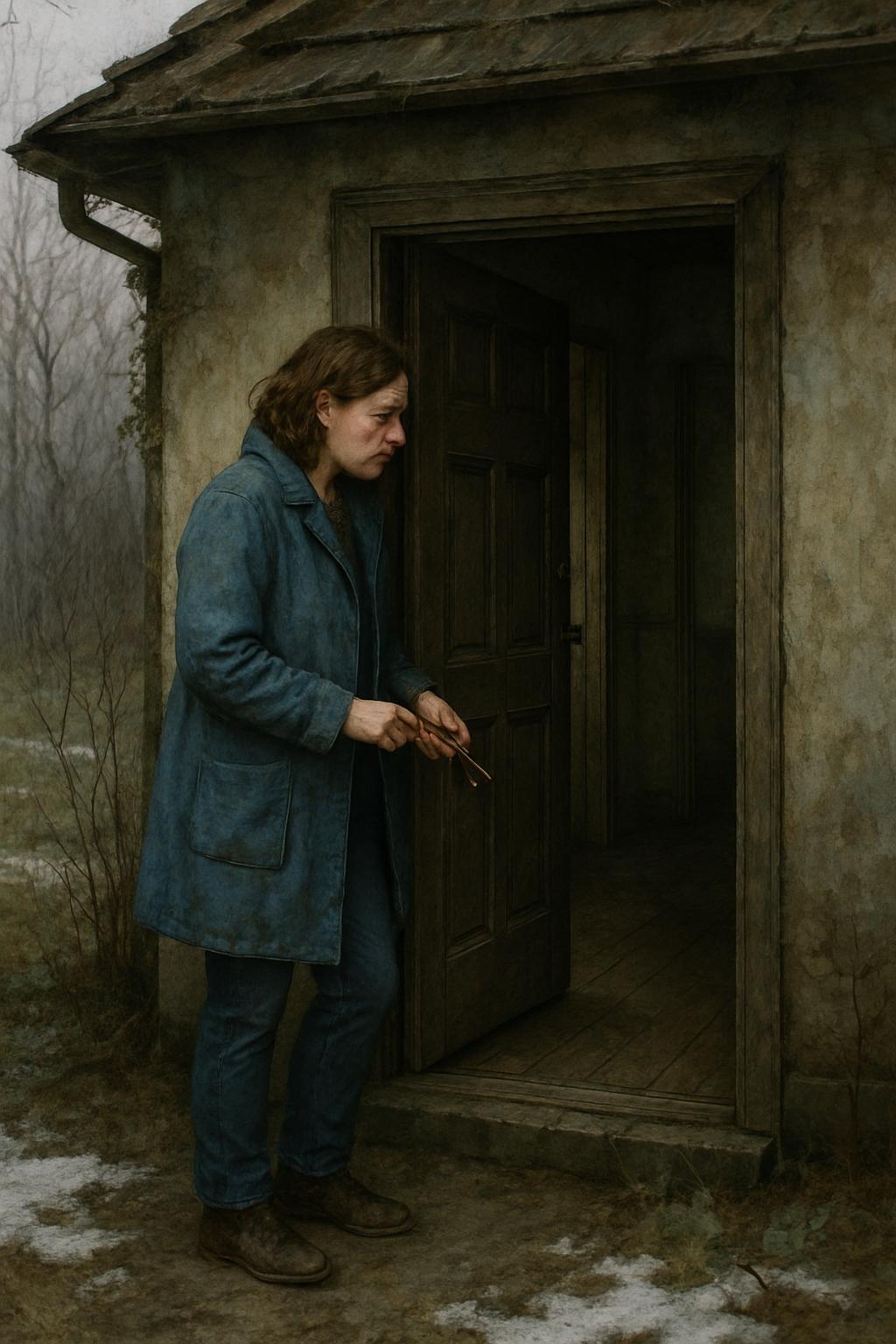 Она открыла дверь ржавым ключом.