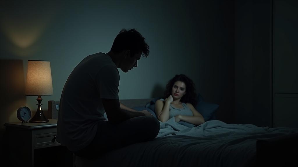В полумраке спальни, освещённой лишь тусклым светом уличного фонаря, его силуэт выглядел напряжённым.