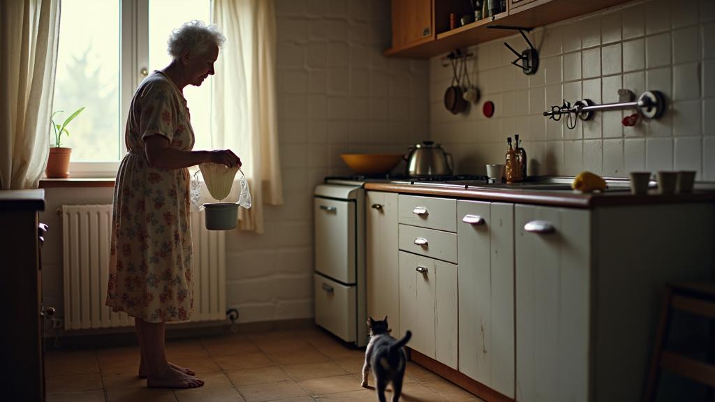 Она только подоила корову свою, Зорьку и шла в летнюю кухню, чтобы процедить молоко по банкам и убрать их в холодное место.