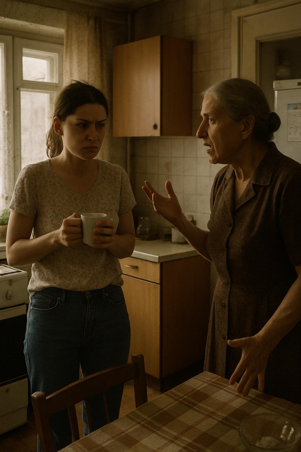 Лицо свекрови покраснело — верный знак, что разговор вот-вот перейдёт в спор. — Сергей! — крикнула она в сторону коридора. — Ты слышишь, что твоя жена говорит?