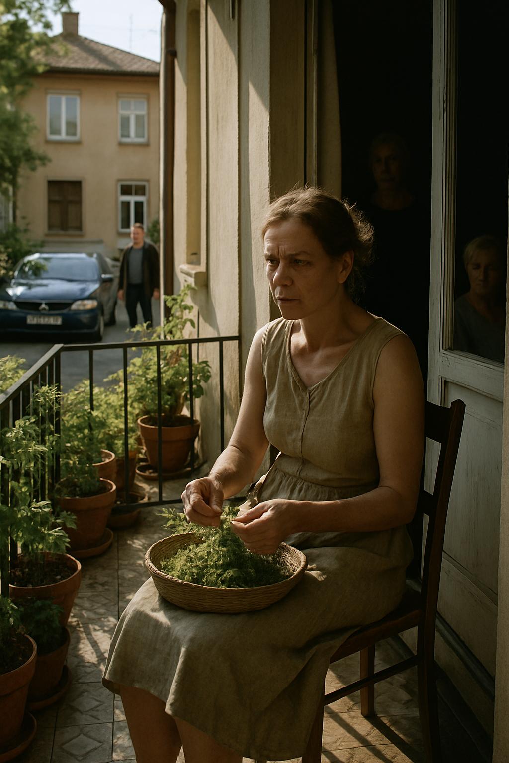 Татьяна устроилась на веранде дачного домика, перебирая травы для сушки.