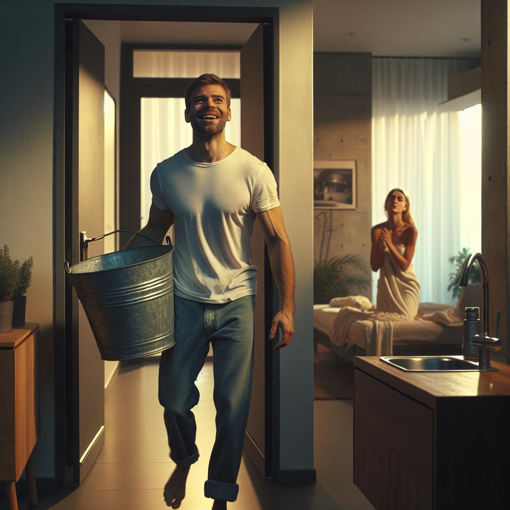 Оцинкованное ведро с грохотом опустилось на ламинат в прихожей, оставив на чистом полу мокрое, грязное пятно.