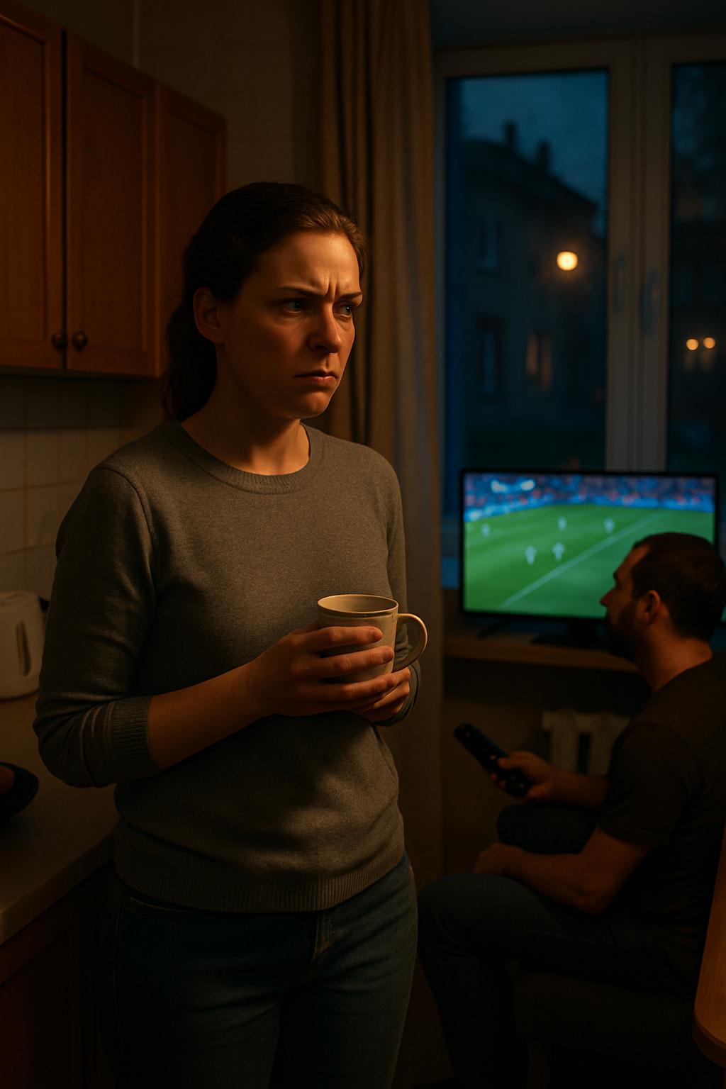 Алексей, не отрываясь от экрана, на котором зелёные футболисты метались по полю, казалось, даже не заметил её молчания.