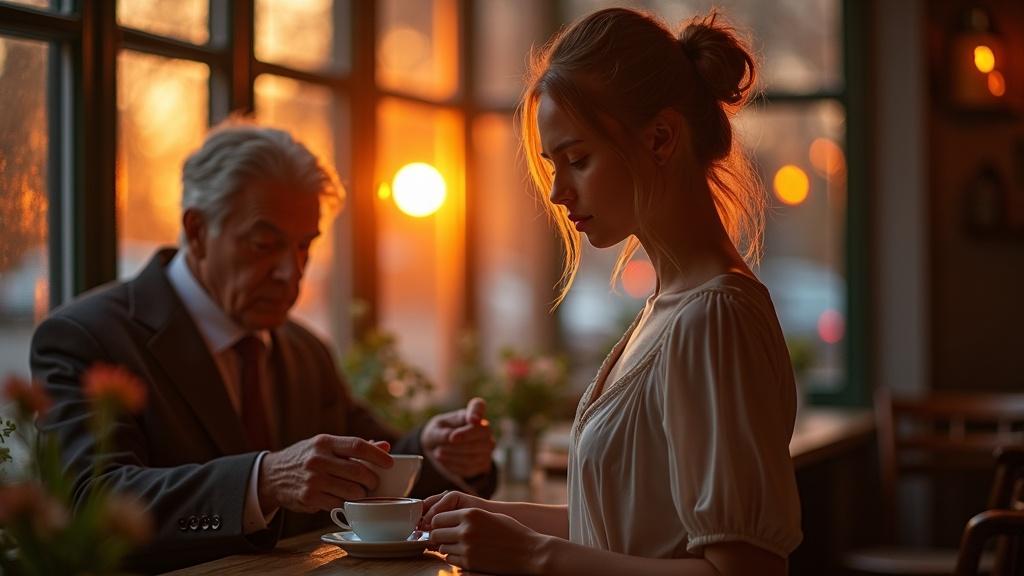 Однажды вечером, в самом центре Киева, в уютном кафе, где воздух был пропитан ароматами дорогого кофе и свежесрезанных цветов, а стены украшали благородные бархатные ткани, заканчивала смену официантка по имени Ольга.
