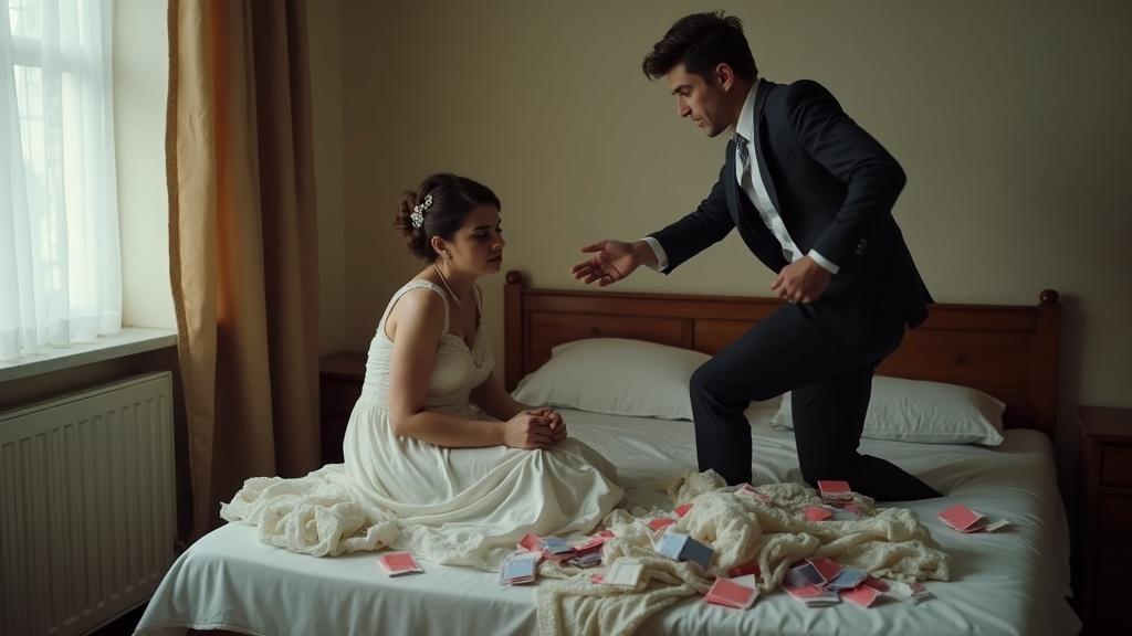 — Тридцать тысяч! Тридцать проклятых тысяч, Ольга! Ты это видишь?! — Дмитрий бросил конверты на кровать. Белое покрывало с лебедями — специально для брачной ночи — оказалось усыпано разноцветными бумажками. Некоторые конверты были пусты — гости забрали их обратно, вытащив деньги. Ольга сидела на краю кровати в свадебном платье. Фата съехала набок, макияж растёкся от слёз. Руки дрожали, когда она пыталась расстегнуть браслет — подарок подружек.