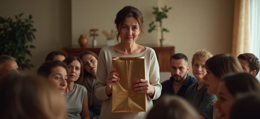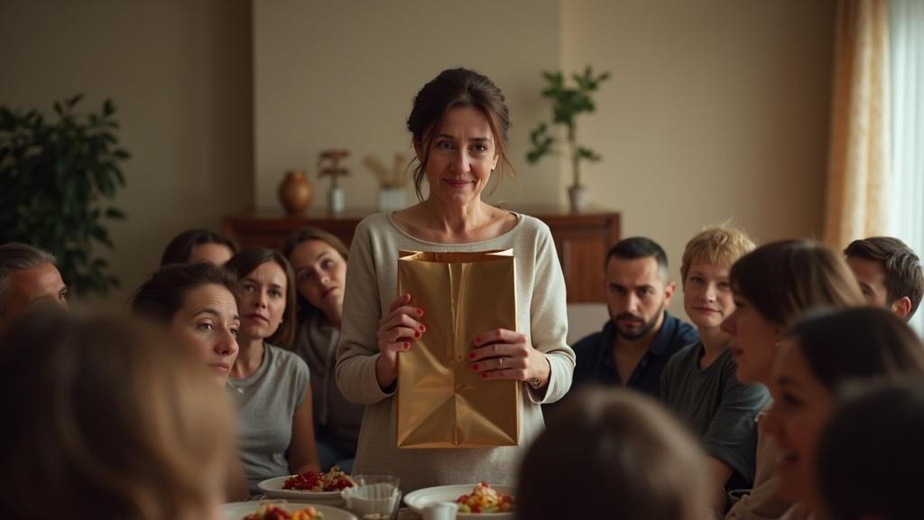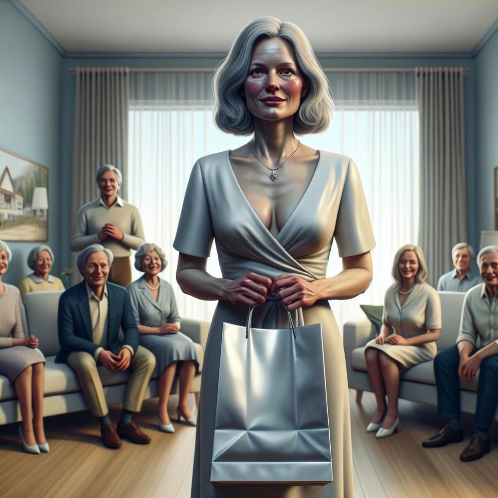 Тамара стояла в центре гостиной, крепко сжимая в руках блестящий пакет с золотым тиснением.