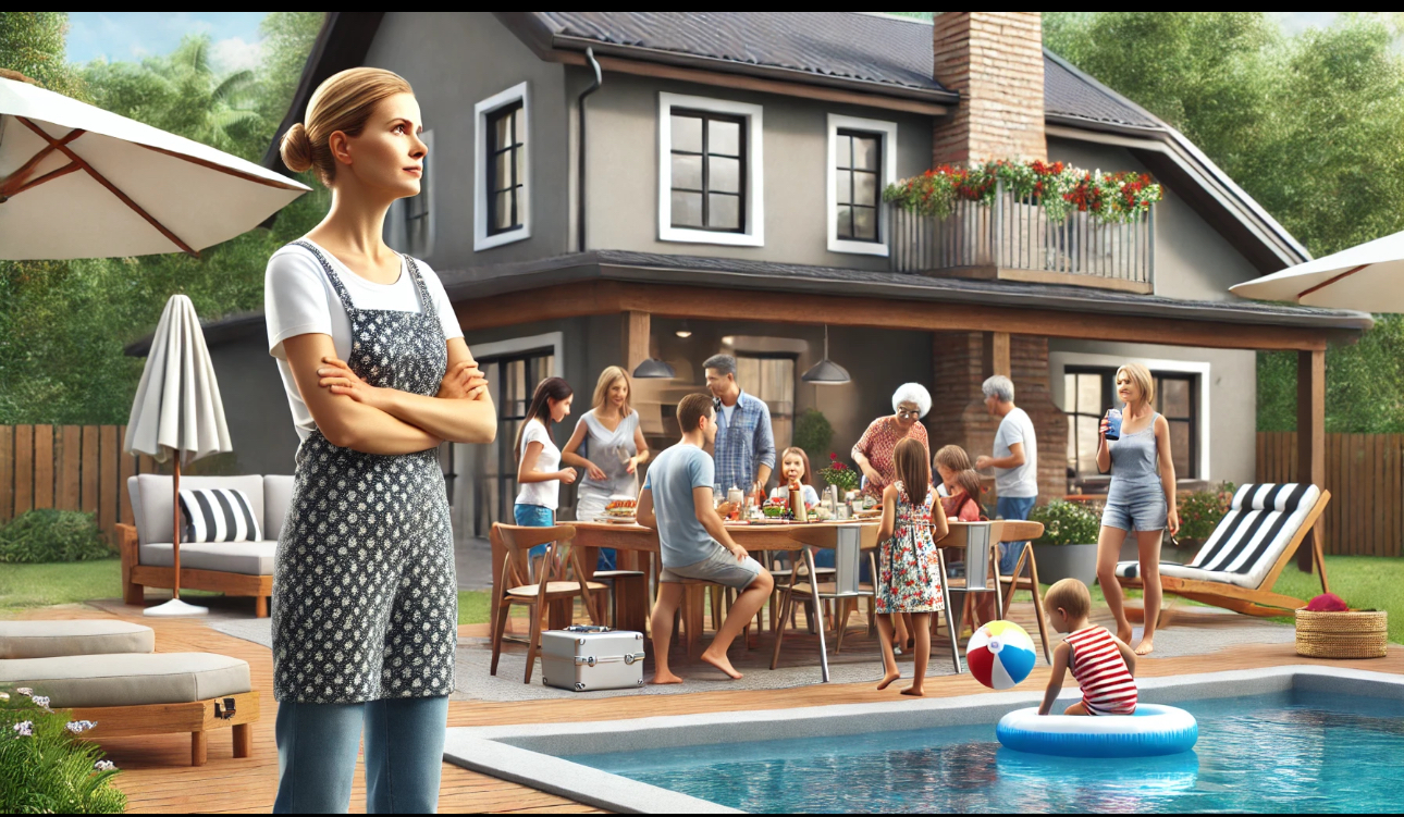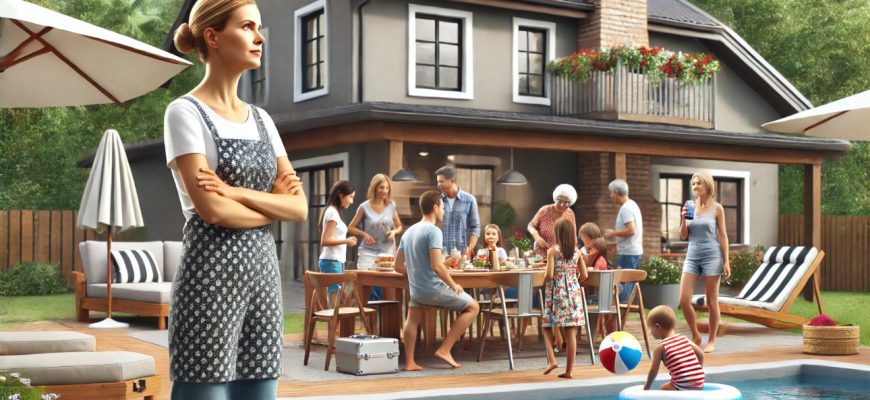 — Купальник взяла? На улице такая жара, в бассейне самое то освежиться, — выглянула свекровь в окно, выходящее на зону отдыха.