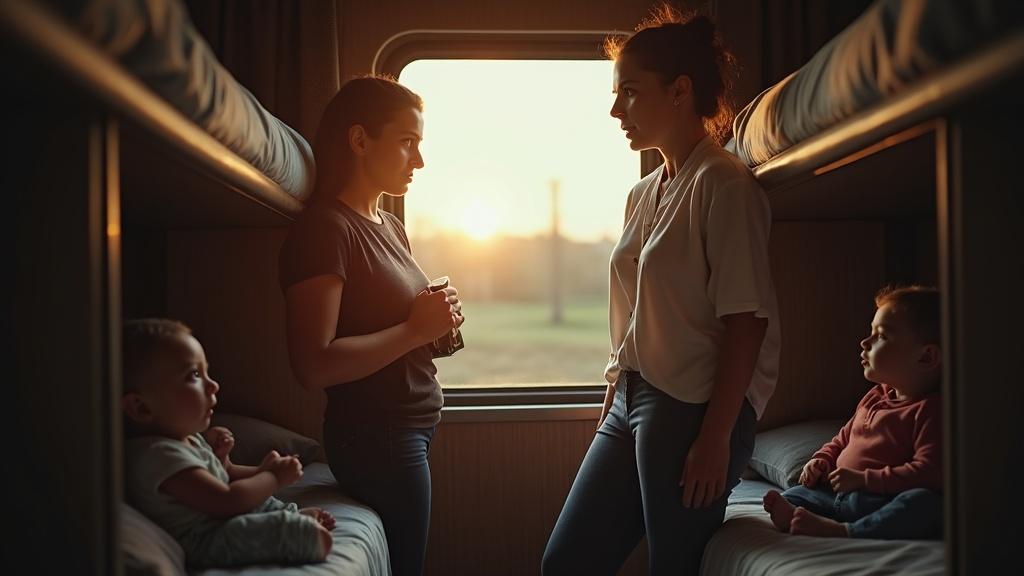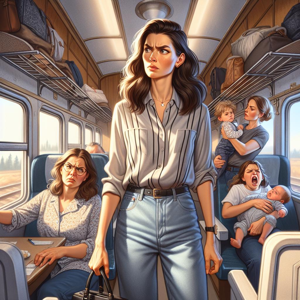 Она купила билеты подешевле и решила прикрывать своё нахальное поведение своими детьми.