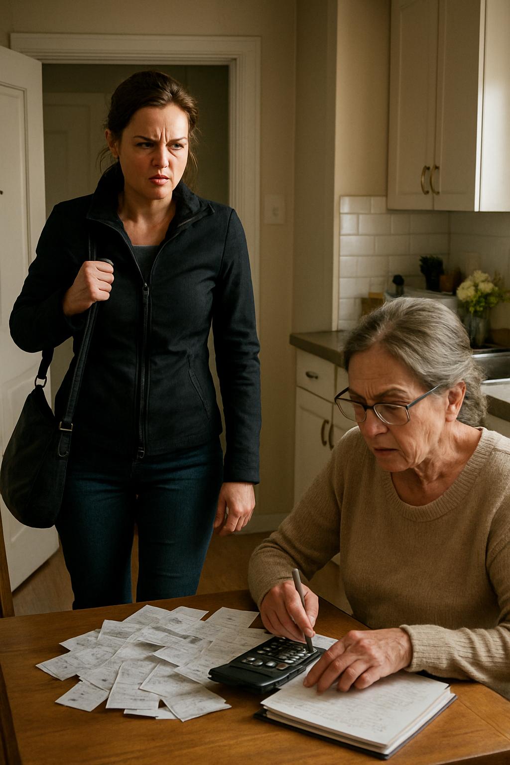 Она направилась на кухню и увидела знакомую картину: свекровь сидела за столом с калькулятором, блокнотом и стопкой их чеков.