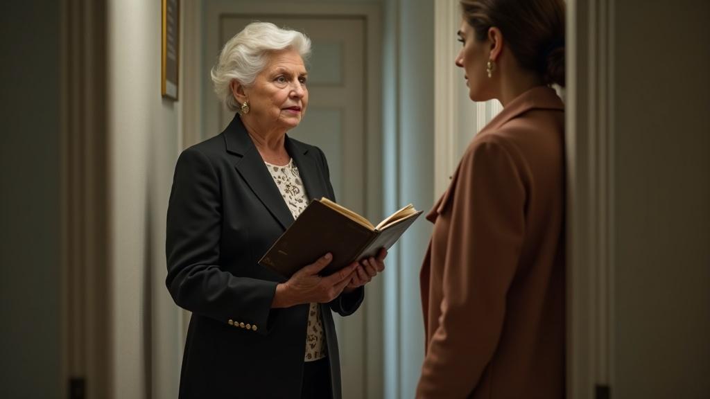 Она стояла в дверном проёме моей прихожей, аккуратно поправляя безупречную причёску, и в руках держала небольшой блокнот в кожаном переплёте.