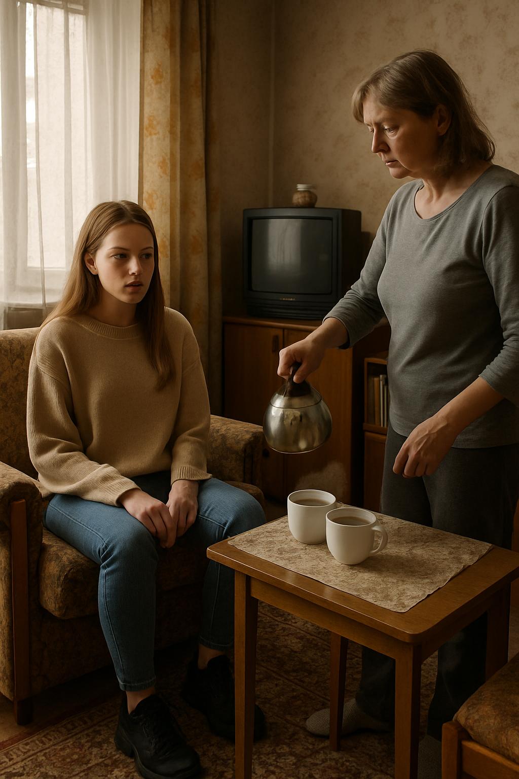 Я поставила перед ней чашку.