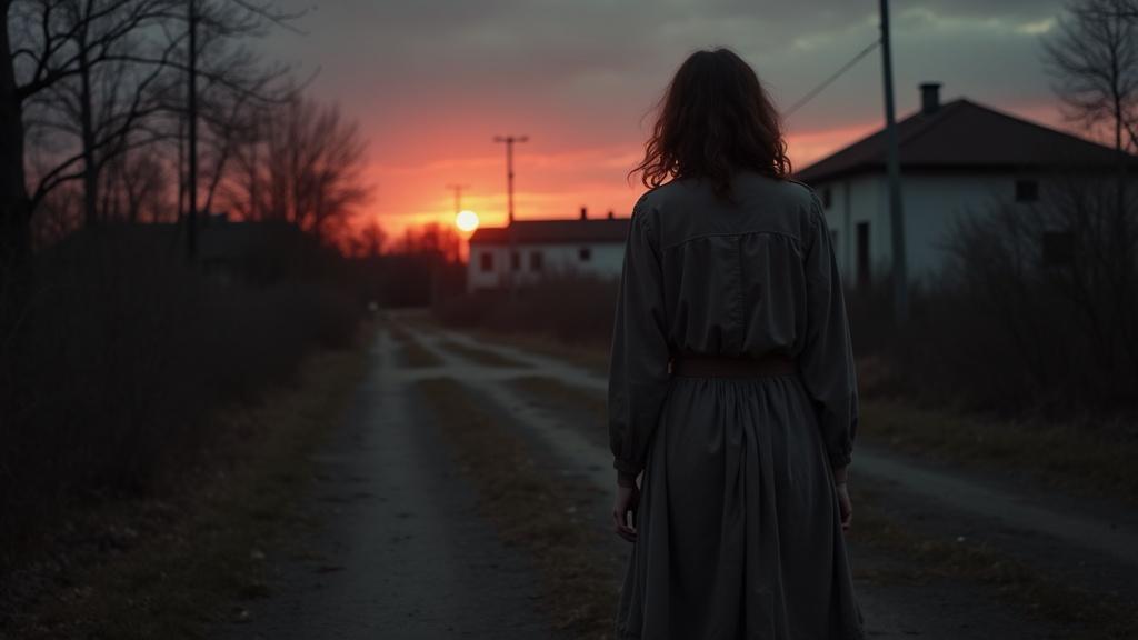 Тамара стояла на краю пустыря, устремив взгляд на багровую полосу заката.