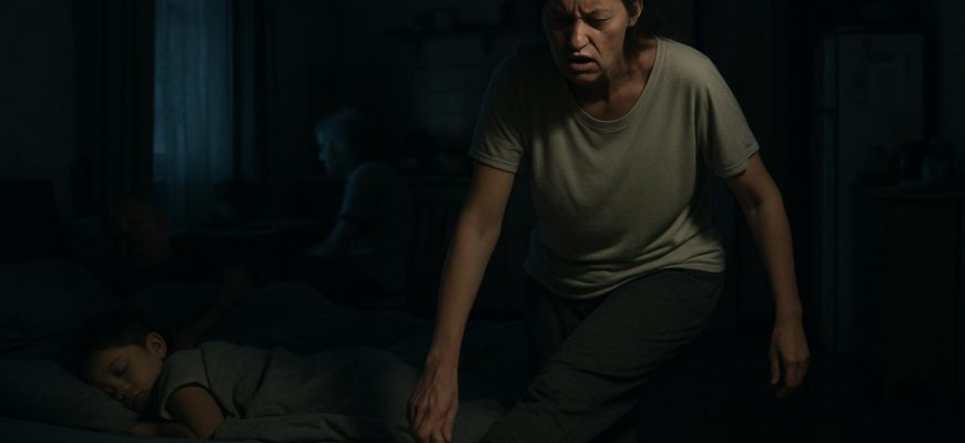 Из угла гостиной доносился глубокий, могучий храп свекра, заглушая сопение двоих детей.