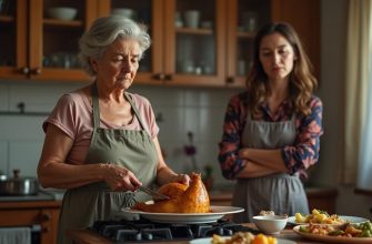 На кухне Ольга, жена Алексея, настойчиво пыталась помочь Тамаре с ужином, бесцеремонно перетаскивая посуду и давая советы по приготовлению соуса.